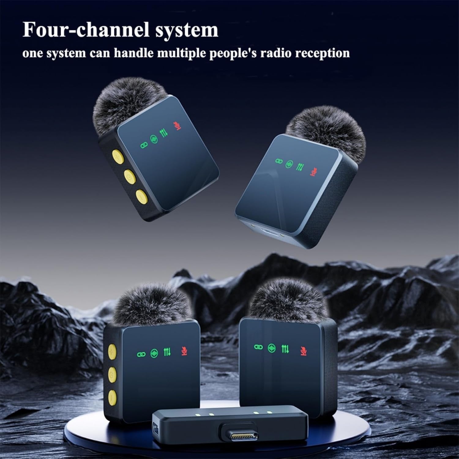 The 4-in-1 Professional Wireless Lapel Microphone System is the ultimate audio solution for multi-person recordings, podcasting, interviews, and group content creation. With advanced noise cancellation and UHF transmission technology, this system delivers crystal-clear audio quality for professional results.