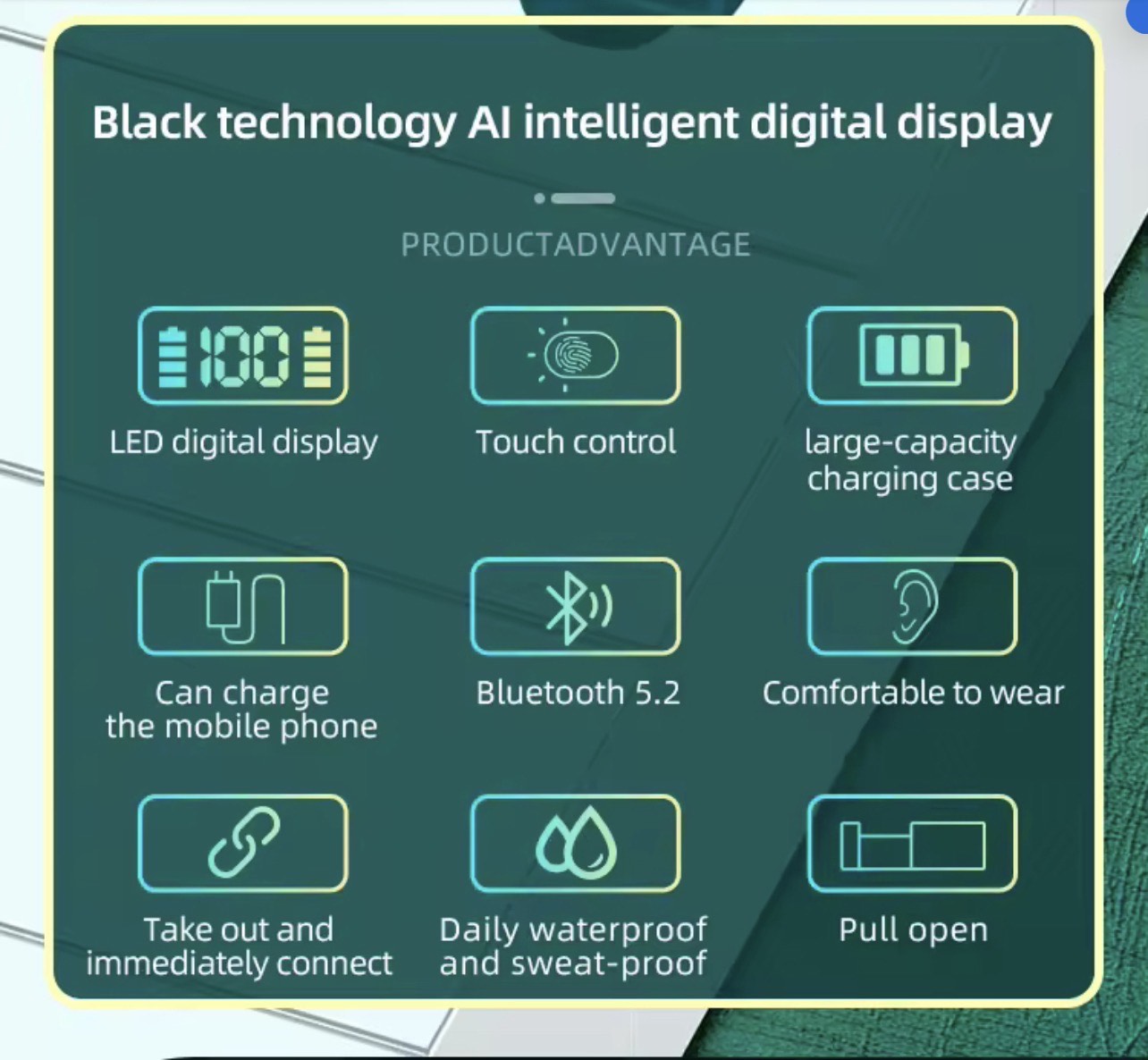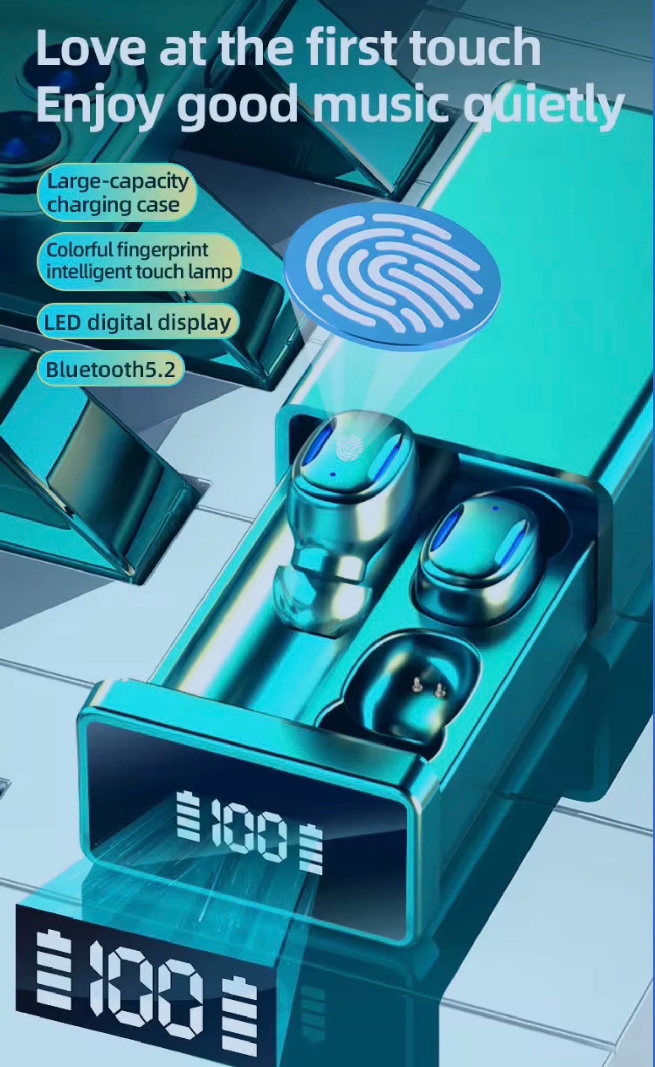 - 🔋 Smart LED Digital Display: A clear, built-in LED display on the charging case provides real-time battery status for both the case and each earbud (1%-100% display).