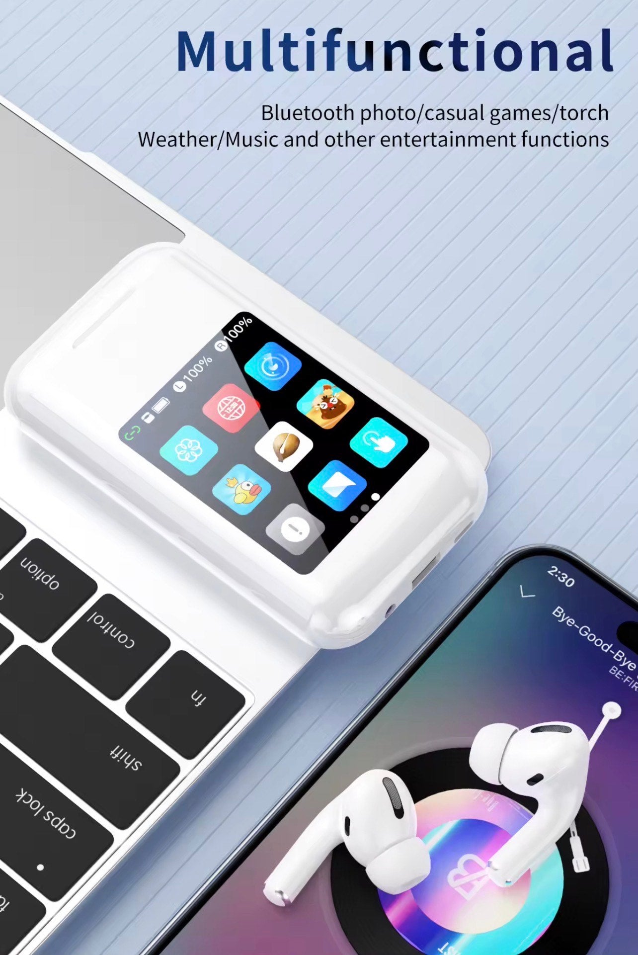 The All-New A98 3-in-1 Touch & Wide Screen Earbuds offer a multifunctional, portable audio solution featuring a 2.8-inch HD touchscreen charging case, integrated 5000mAh power bank, and Active Noise Cancellation (ANC) Bluetooth 5.3 earbuds. This innovative device allows users to manage music, games, and battery life while charging mobile devices on the go.