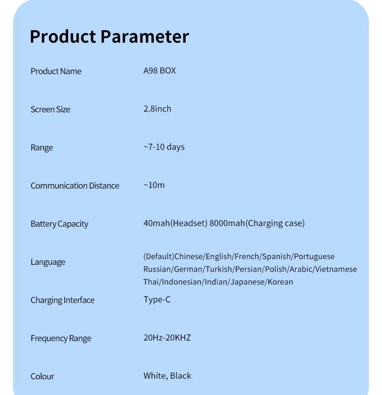 - 3-in-1 Functionality: The A98 serves as wireless earbuds, a portable power bank, and a multimedia display device.