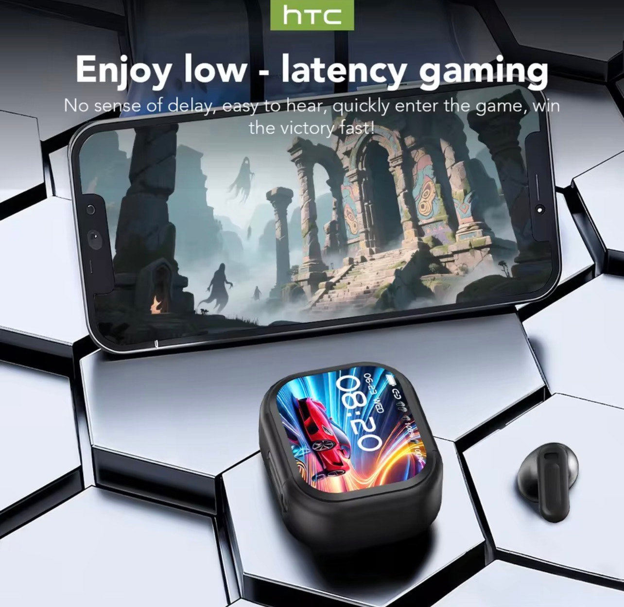 THE HTC NE20 BLUETOOTH EARBUDS are advanced AI-powered, 2-in-1, real-time translation headphones supporting 134+ languages and accents with 98%+ accuracy. Featuring a built-in interactive LCD touchscreen on the charging case for direct control, they offer 60 hours of total playtime, Bluetooth 5.4, and IPX4 waterproofing, making them ideal for international travel, business, and daily use.