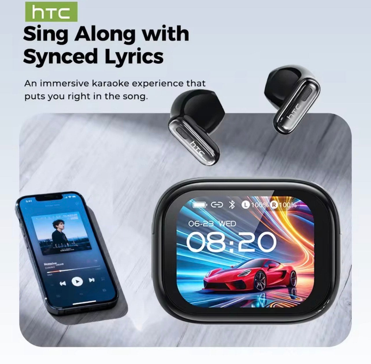 - LED Full-Color Touchscreen Case: The magnetic charging case includes an interactive, high-definition display allowing users to control music, adjust volume, manage settings, and even act as a remote camera trigger.