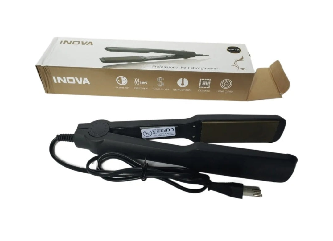Inova (Nova) NHC-329 Professional Hair Straightener is a versatile, lightweight styling tool featuring advanced ceramic or titanium coated plates designed for fast, snag-free straightening. It heats up in 30-45 seconds, featuring temperature control (160°C to 220°C) to create smooth, salon-like results for all hair types.