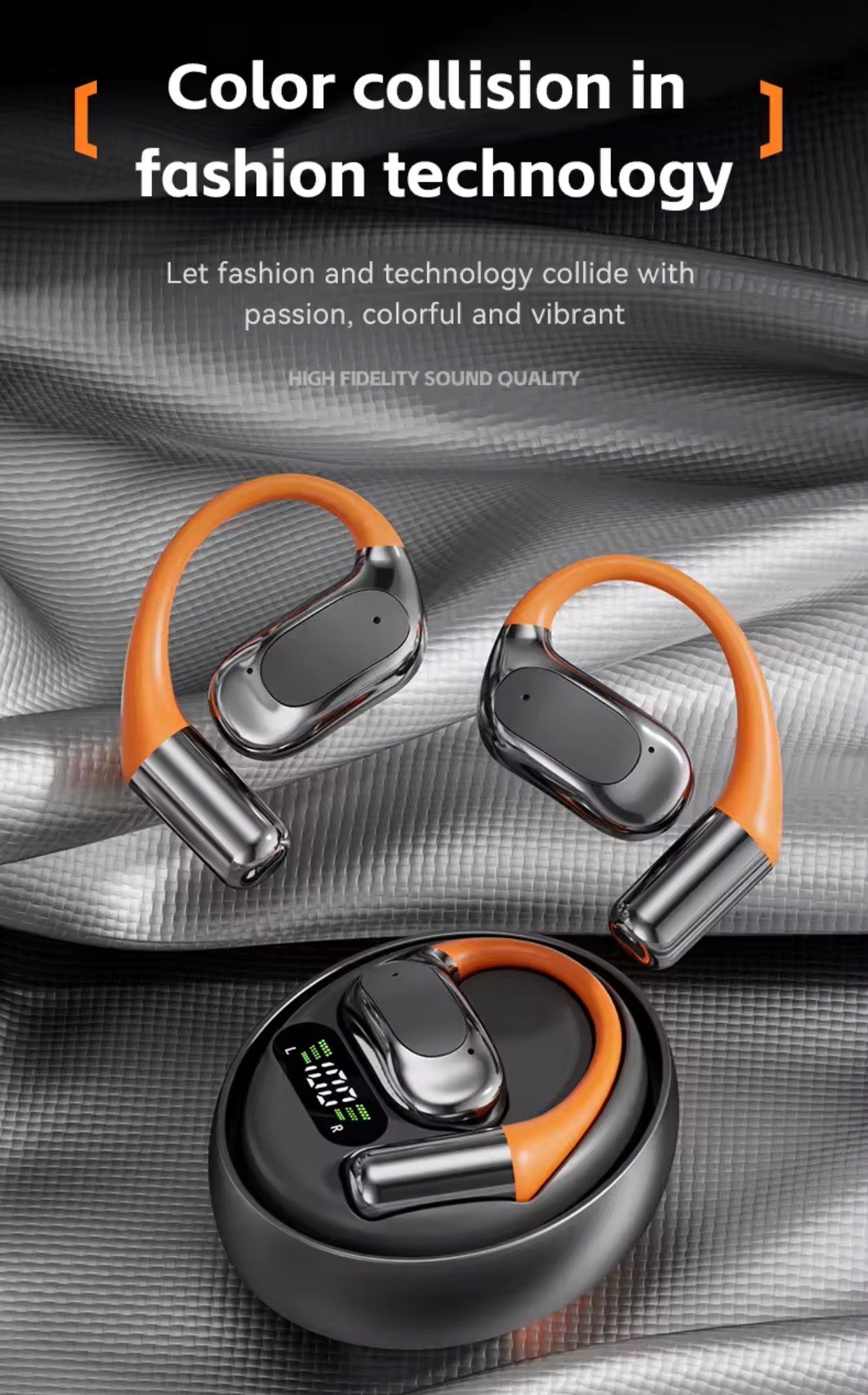 M113 OPEN EAR HEADPHONES WITH LED, DIGITAL BATTERY DISPLAY & ROTATABLE BT5.4 WIRELESS EARPHONES
