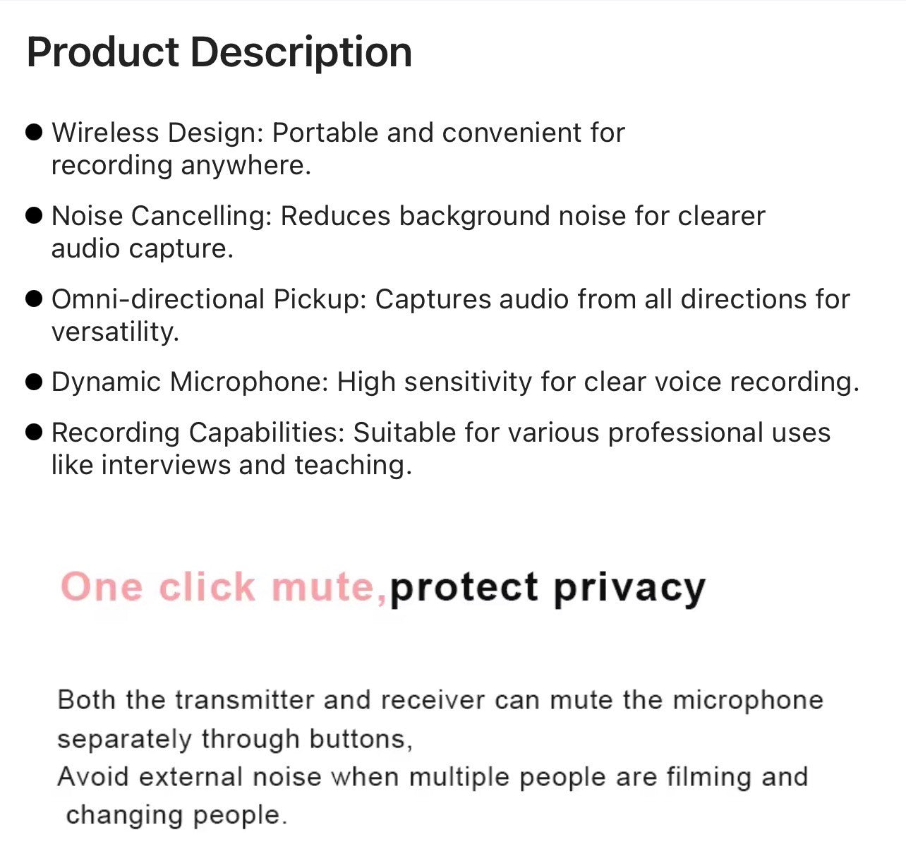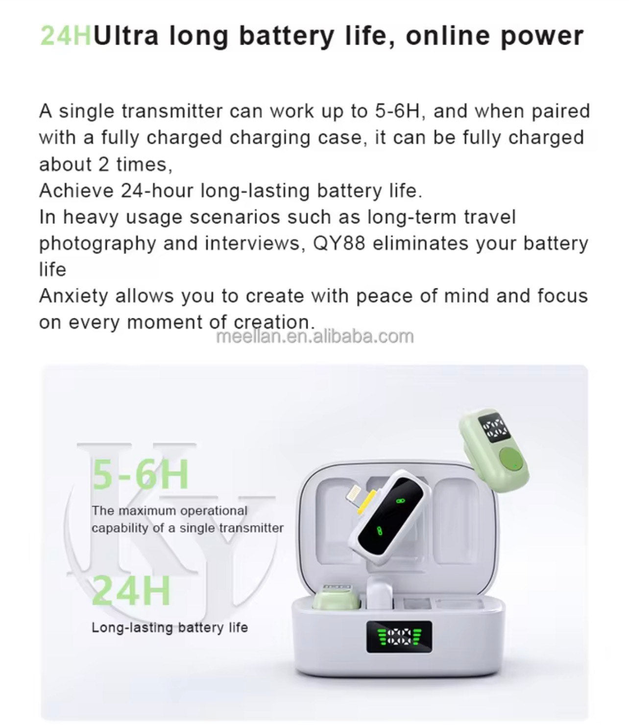 The QY88 Latest AI Noise Reduction Lapel Microphone is a complete professional audio solution featuring 2 receivers, 2 microphones, and a charging case. Powered by advanced AI noise reduction technology, this system delivers crystal-clear audio by intelligently filtering out background noise and unwanted sounds. Perfect for dual-person interviews, podcasts, video production, and professional content creation. The included charging case keeps all components powered and organized, making it ideal for on-the-go recording. Whether you're conducting interviews, creating content, or recording presentations, the QY88 ensures professional-quality audio every time.