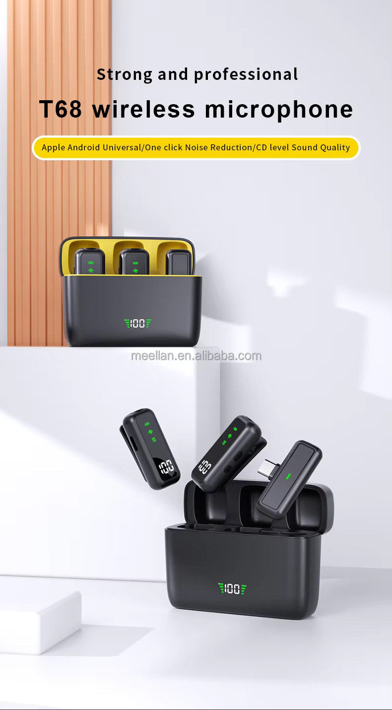 The T68 Professional 2.4GHz Wireless Microphone features advanced noise reduction technology and comes with a convenient charging case for ultimate portability and performance. Operating on the reliable 2.4GHz frequency, this professional-grade wireless microphone delivers crystal-clear audio with minimal interference, perfect for content creators, vloggers, journalists, and professionals. The built-in noise reduction ensures clean sound capture even in challenging environments, while the charging case keeps your microphone powered and protected. Ideal for interviews, video production, podcasts, live streaming, and professional recordings.