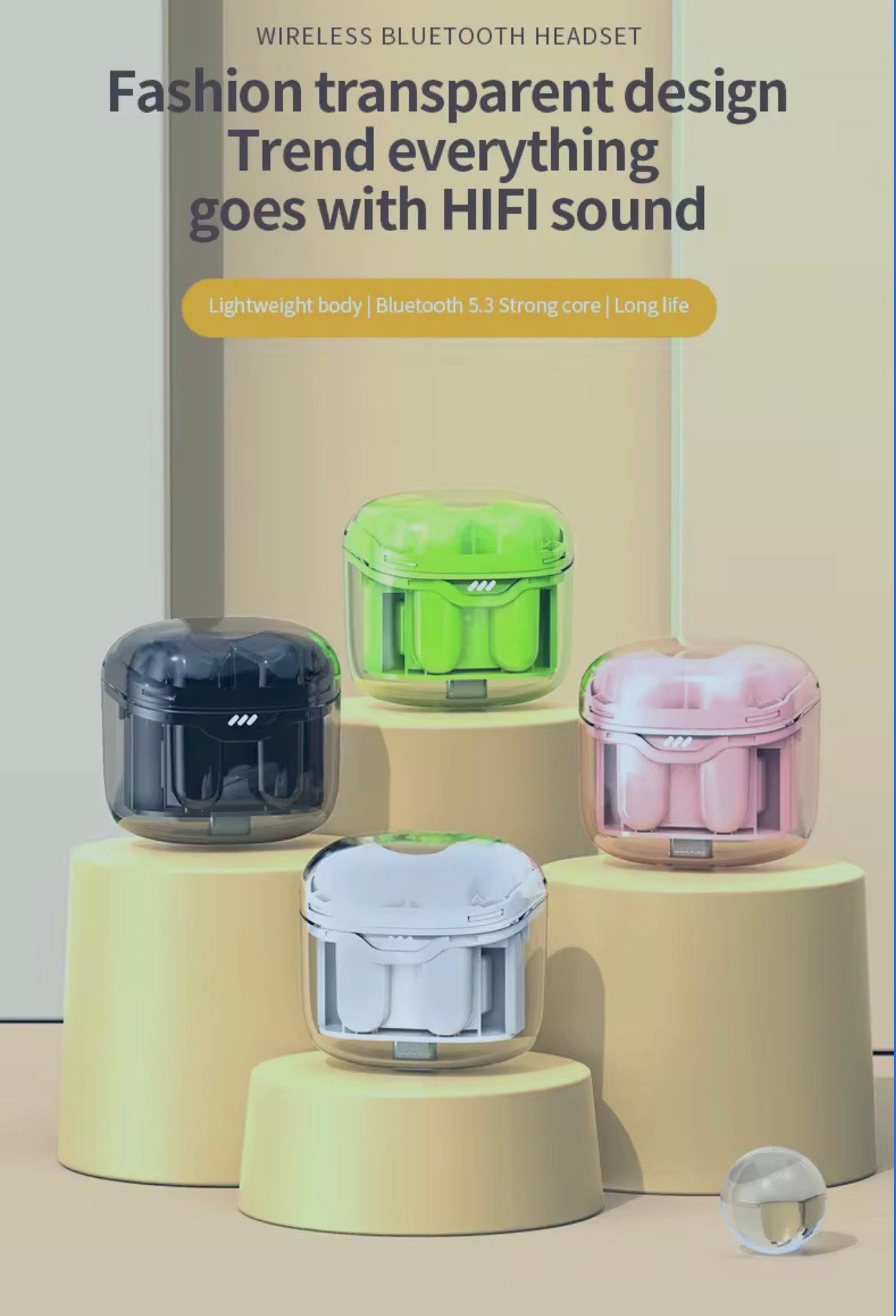 • Transparent Charging Case: Compact and portable case with a unique transparent design, often including a digital battery display and Type-C fast charging.